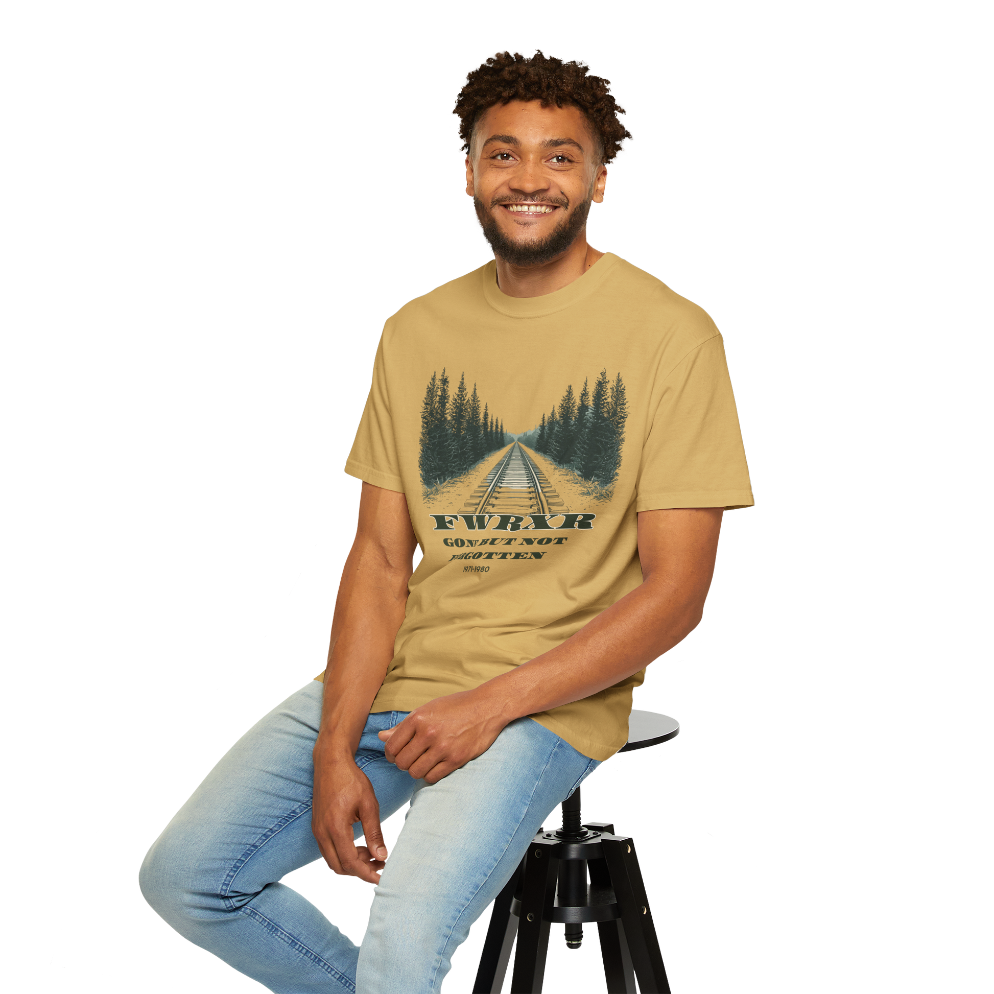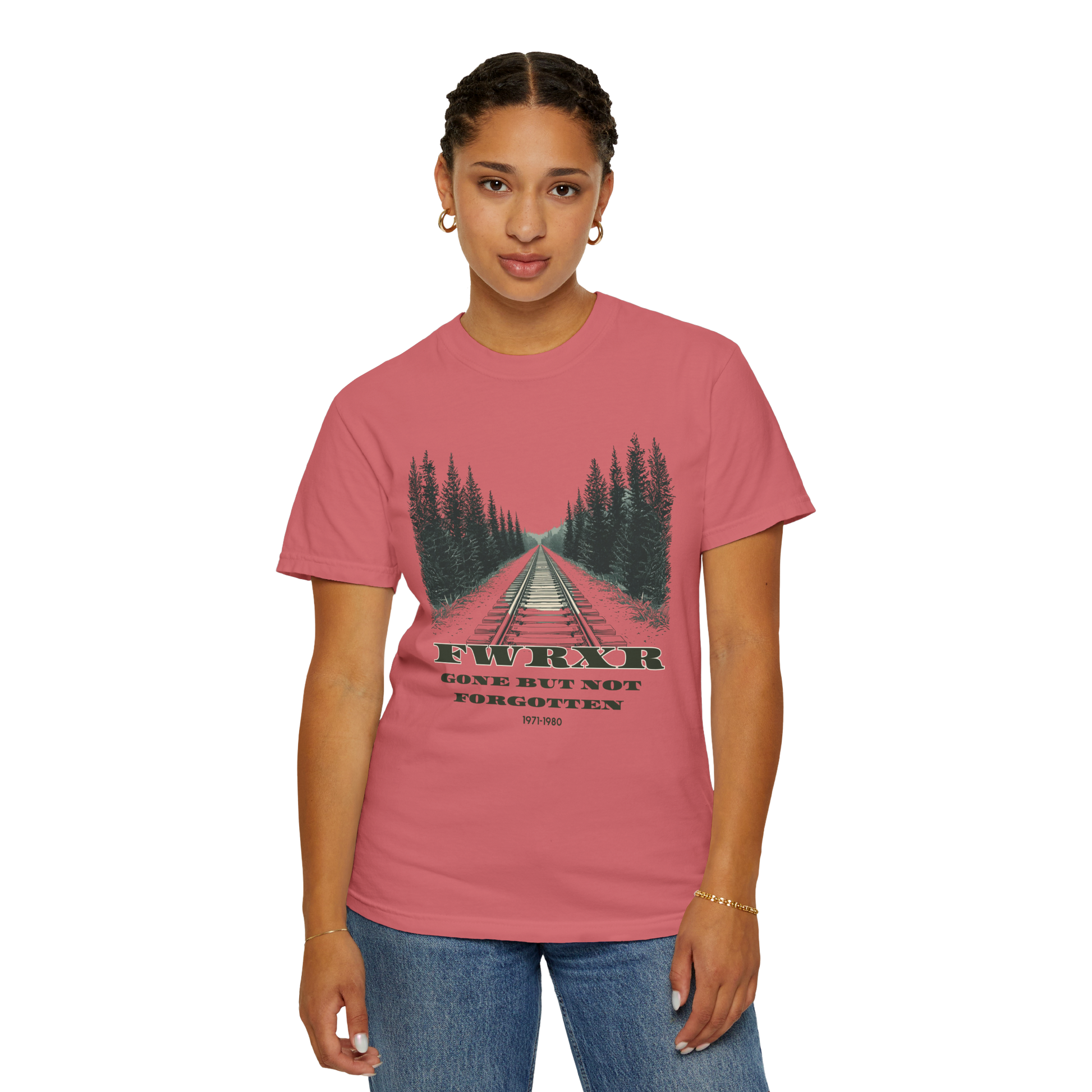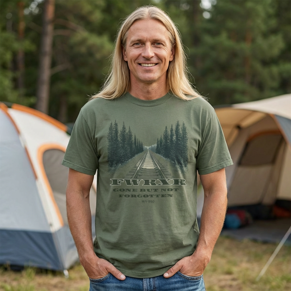 Part of the thrill of camping at the fort is looking for the remnants of the old railroad tracks that use to surround the campgrounds. This shirt is a fitting tribute to one of the first means of transportation. Perfect for history buffs, fort camping enthusiasts, and anyone who appreciates the golden age of rail travel. Whether you're exploring forgotten routes or just simply wanting a unique shirt that is only understood by the true fans - this is your shirt. Comfortable, durable, and ideal for campfire stories and trail adventures.